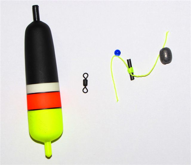 Show here are the pieces that an angler needs to set up for fishing the bobber and jig method for steelhead.