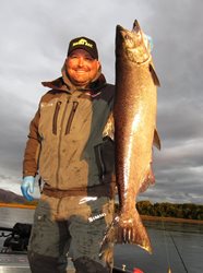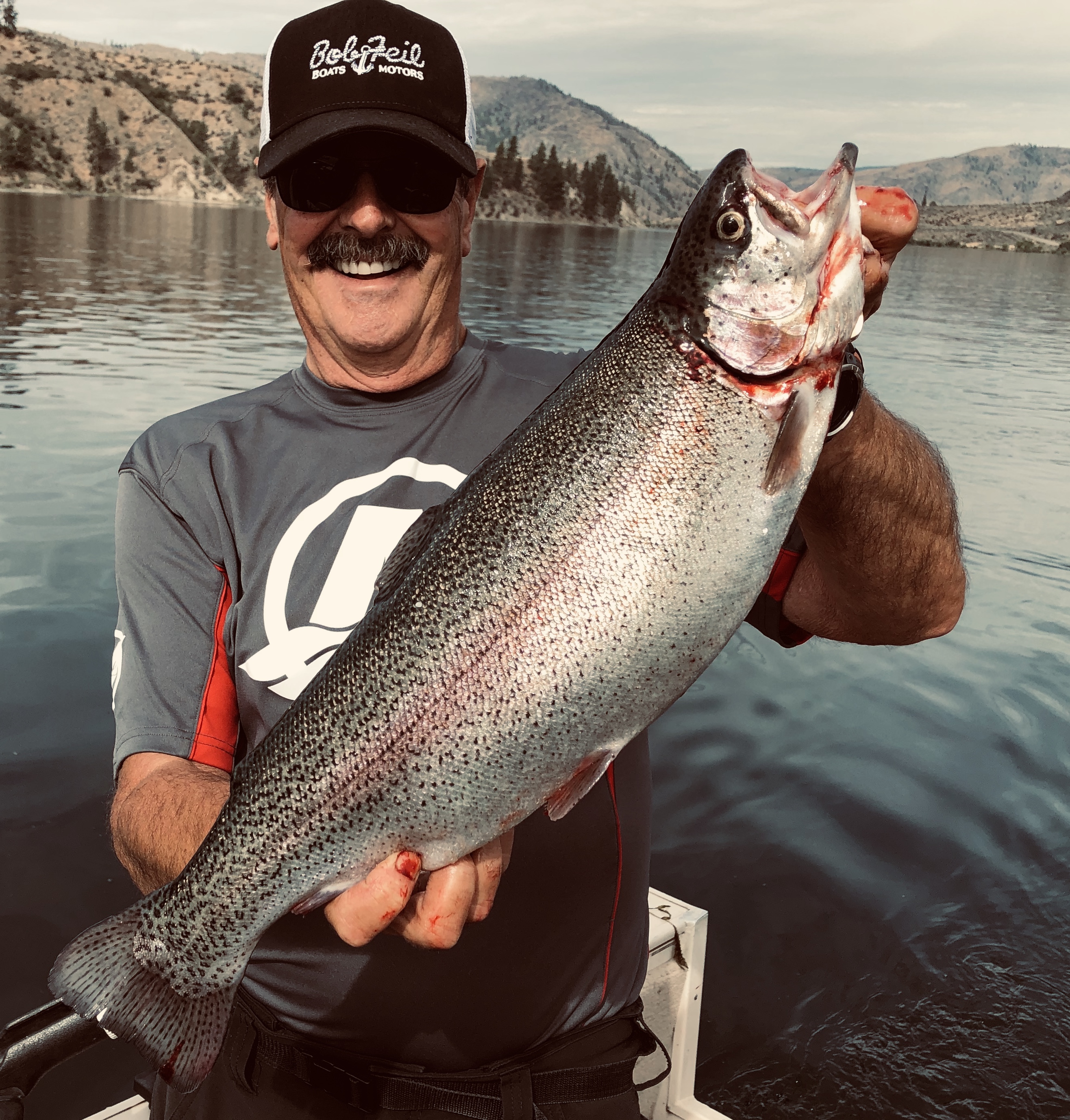 Here is Keith Archibald with a nice rainbow caught trolling on Lake Roosevelt at Spring Canyon.