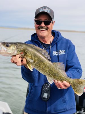 I have wanted to get to Moses Lake for a while, but have been putting it off, waiting for the lake to fill. It is full now, but my buddy James Lebow said it may still take a while for the walleye fishing to kick into gear. He was willing to join my brother in law Tom Verschuren and I for a try at Moses Lake on Wednesday. We launched at Connelly Park and tried the flat above the park. Not marking enough fish, we drove up to the very north end. We were marking a few fish here and I landed a whopping 24-nch fish. I got this fish on a gold and black hoochie style rig with a gold sparkle Butterfly blade. James suggested that we try the point across from the park, so off we went. We were marking more fish here, but also getting snagged a lot. I decided to try a naked Slow Death Hook and that did the trick. I got bit several times and managed to hook and a land a nice walleye just over 20inches. Walleye fishing is about to take off on Moses, and I also noticed a bass fisherman landing some fish, too.