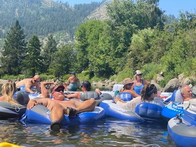 For FishingMagician.com, I'm Eric Granstrom. Saturday was the first day in as long as I can remember when I was on a body of water for over 5-hours but didn't have a tackle box, fishing rod or anything with me. Marion and I were invited to go with a group of people to float the Icicle River near Leavenworth. This is the time of year that hoards of people flock to the chilly waters to cool off from the summer heat and lazily float on inner tubes and air mattresses for hours-on-end. We put in just below the fisher hatchery and floated all the way down to Leavenworth, which took about 5-hours. We had an extra tube tethered to our tubes that contained a cooler full of food and beverages to enjoy the day. At one point, Marion looked over at me as I relaxed in the sunshine with my head back on the tube and said, "see, you would probably be working today!" Which, she's right. Once in a while, you owe it to yourself to just sit back and let the waters take you without trying to be in control of everything. Until next time, Good Fishing!