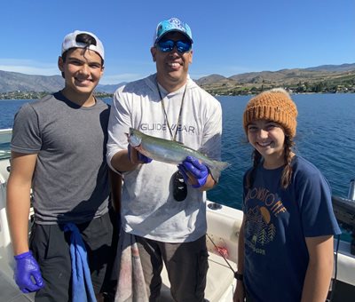 The Anantatmula family poses with one of the 40 kokanee we landed while fishing on their boat on Lake Chelan last Friday.