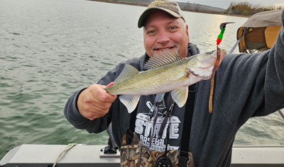 For FishingMagician.com, I'm Eric Granstrom. First off, let me give a big shout out to Smiley in Yakima for letting me know that Mardon just put out a report on fishing at Potholes last week. It gave me great insight on a fishery I was walking into blindly. Next, the other thing I should have checked before making our reservations was the weather. Turned out to be quite a windstorm on Saturday with gusts over 40-miles per hour. Thankfully I was preoccupied with calling an 8-man playoff football game up in Moses Lake for the afternoon, so fishing was out of the question. Marion and I took to the water Saturday morning with even more intel from Nate Bratton, who braved the wind Saturday to take his boys out fishing. He said to definitely try along Medicare Beach and off the State Park in about 30-feet of water. We ran over to Medicare Beach first and found some marks on the screen. We tried jigging for a walleye for nearly an hour with no success. We finally started trolling a worm harness and bottom bouncer, also with zero luck. We finally caught one off the State Park. Until next time, Good Fishing!