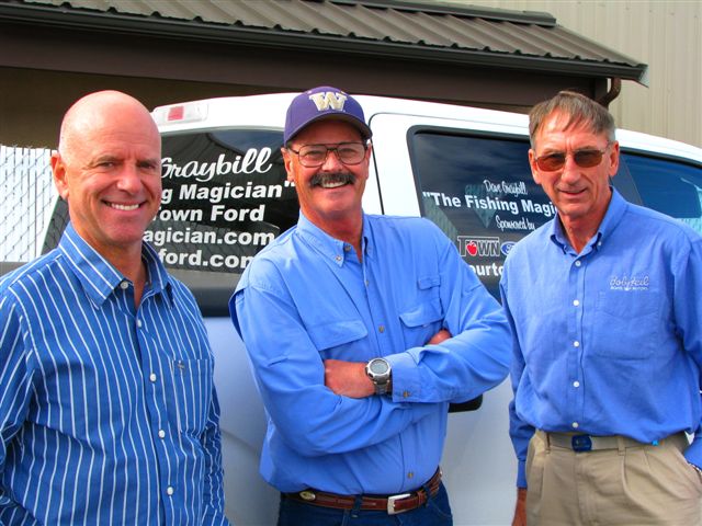 Shown here are Mark Delaney, sales manager for the Westwinn Group (left), me and Dan Feil, of Bob Feil Boats and Motors after our tour of the JetCraft production plant.