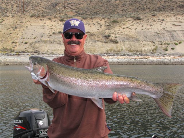 This fish was taken near Crab Creek below Wanapum Dam. Shown here is Shane Magnuson and his client Kevin.