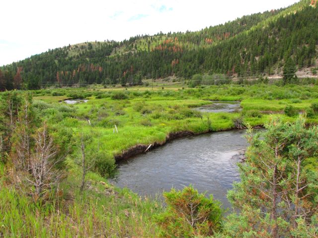 Warm Springs Creek runs pretty fast for most of its length, but there are a few holes that hold some nice cutthroat. The stream flows down the valley through Anaconda, Montana.