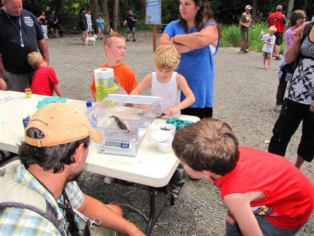 Trout were carefully weighed to find the largest five for the big prizes, but all the kids could take some tackle home from the TU Kids Fishing Derby at the Blackbird Island Pond.