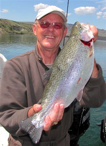 Rollie Schmitten of Lake Wenatchee shows off a nice triploid taken near the lower pens on Rufus Woods. Fishing wasn't great, but the Colville Tribe continues to plant the reservoir with fresh triploids every month.