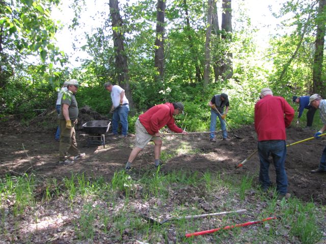 Hard at work are members of the Icicle Valley Chapter of Trout Unlimited at the acclimation pond on Blackbird Island. This group did the really hard work of getting the pond permitted and ready to receive steelhead for smolting, and the second crop is now leaving the pond and headed down the Columbia.