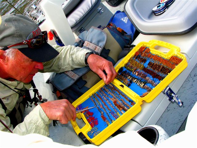 Doug Pendleton, Director of Special Programs and guide at Red's Fly Shop on the Yakima River selects his flies for the day prior to a float. He prepared a great shore lunch during our fishing trip.