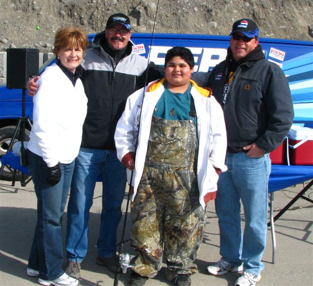 Here I am at the Moses Lake Kids Fishing Derby posing with Julie Smith (left) Moses Lake Irrigation and Rehabilitation District, Derby winner Jonathan Pena and Jeff Bryant of Pepsi, sponsor of the event.