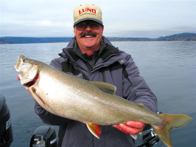 Shane Magnuson, Upper Columbia Guide Services, shows what you do when the Chinook bite is slow on Lake Chelan. You go catch big lakers!