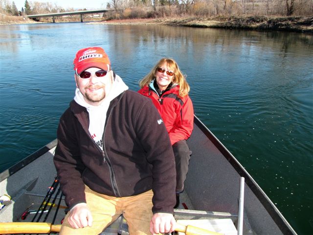 Jerrod Gibbons, Upper Columbia Guide Services, is at the oars on the Okanogan. My wife Eileen is in the back of the driftboat, where she took the video of us fishing.