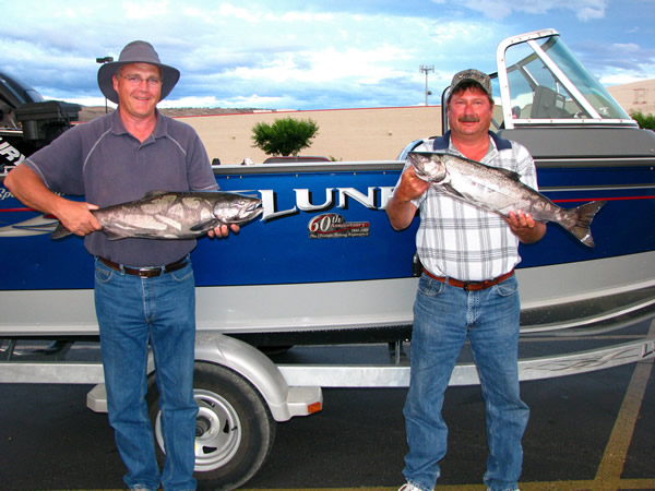 Scott Harker (left) of Cashmere and Greg Roehrich of East Wenatchee pose with the kings they caught fishing with me below Wells Dam.