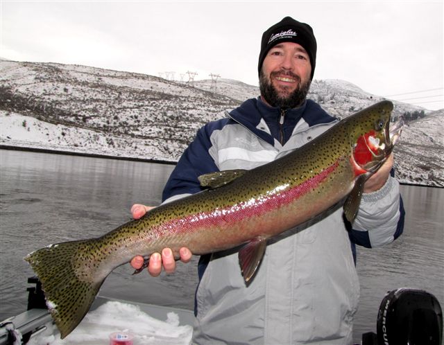 Winter scenery can be spectacular on Lake Chelan. We enjoyed this vista while cranking laker after laker fishing with Anton Jones of Darrell and Dad's Family Guide Service.