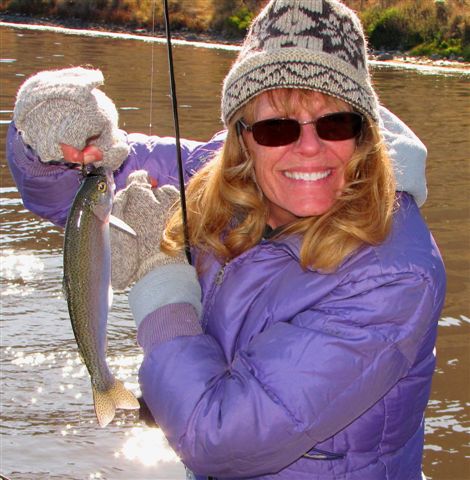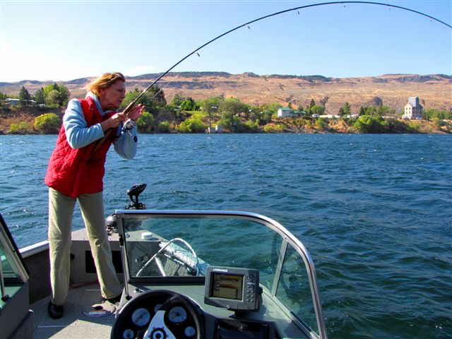 My Eileen battles a steelhead on the upper Columbia. See got her birthday wish; first steelie of the year!