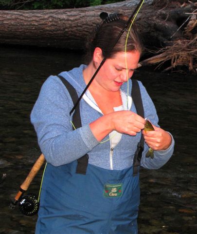 My daughter Whitney finally got to fish the Icicle after many years and she got right back into the swing of things. Here she works on releasing a small rainbow.