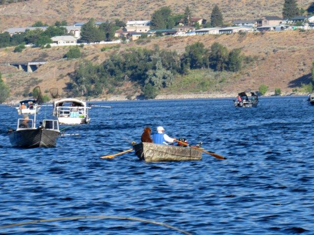 Just to add to the fun of fishing in the crush of Brewster Pool Sockeye Fleet, here was an angler making his way in rowboat--with his dog.