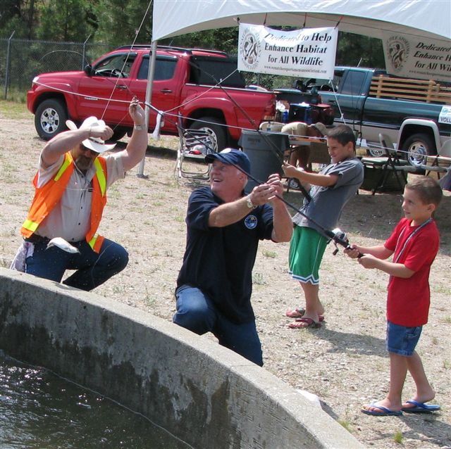 The volunteers from the Wenatchee Sportsmen's Association had their hands full helping kids land their fish at the Annual Fishing Kids Day at the Leavenworth National Fish Hatchery.