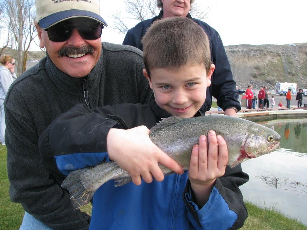 Here I am with a happy angler at the Kids Fishing Derby at Connelly Park, sponsored by the Moses Lake Irrigation and Rehabilitation District and Pepsi. An estimated kids and their families attended the first annual event.