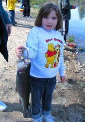 Ruby Martin was pretty proud of the trout she pulled from Pitt Pond at the 10th Annual Kids Fishing Day at Rock Island.