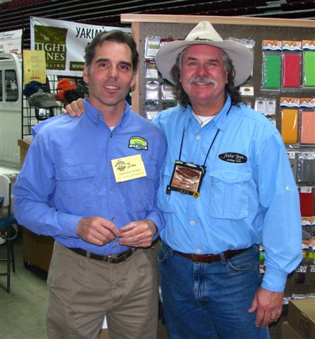 Taking a break from their booths at the Yakima Sportsmens Show are (left)Jim Gallaher, of the Yakima River Fly Shop, and Jim Dercier of Fetha Styx Fishing Rods.