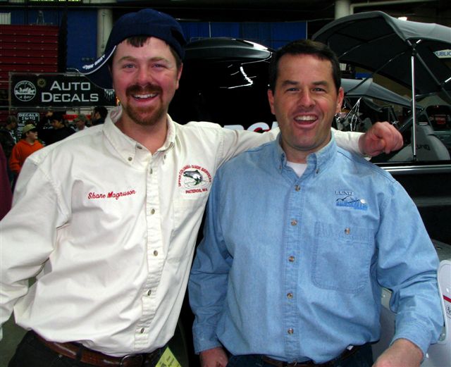 Hamming it up at the Yakima Sportsmens Show are (left) Shane Magnuson, of Upper Columbia Guide Services, and Dan Allen, of Valley Marine in Yakima.