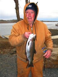 Fishing was a bit slow for most anglers at Burke Lake on the March 1st opener, but check out the size of the rainbow that they were getting! This one was landed by Del Ihrig of Moses Lake.