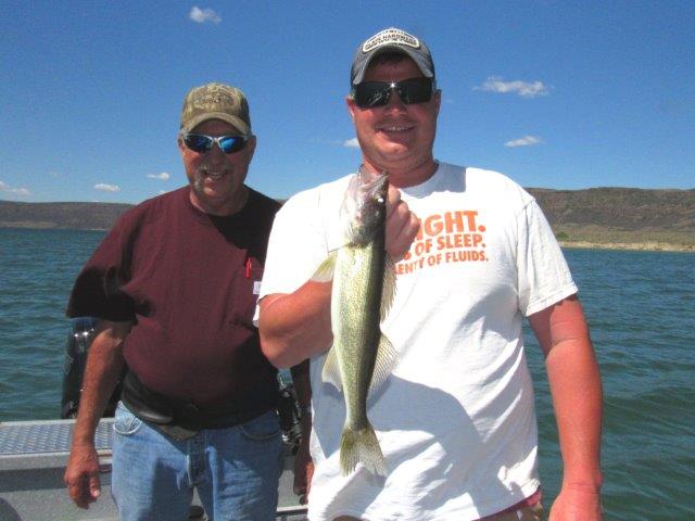 Kim Kozelisky and his friend Dave pose with a walleye they caught on Barker Flats with me on a trip to Banks Lake. We were trolling bottom bouncers with Dutch Fork Blades and Northland Tackle Butterfly blades.