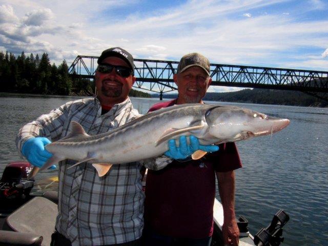 The sturgeon was caught just above the bridge near Kettle Falls by Austin Moser's client Mike. No keepers this day.