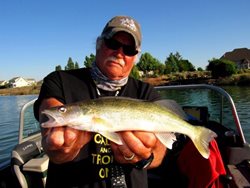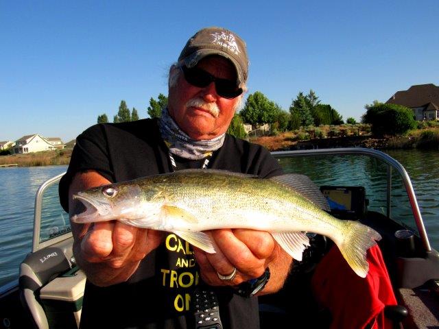 Brian Nielson of BJs Guide Service holds up one of the walleye we caught while trolling bottombouncers and Butterfly blades on Moses Lake.