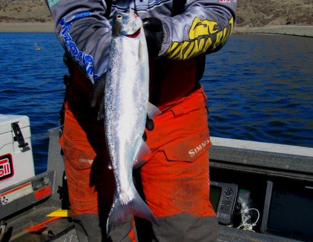 Here is an 18-inch kokanee from Lake Roosevelt. It was landed while fishing with Austin Moser near Hansen Harbor.