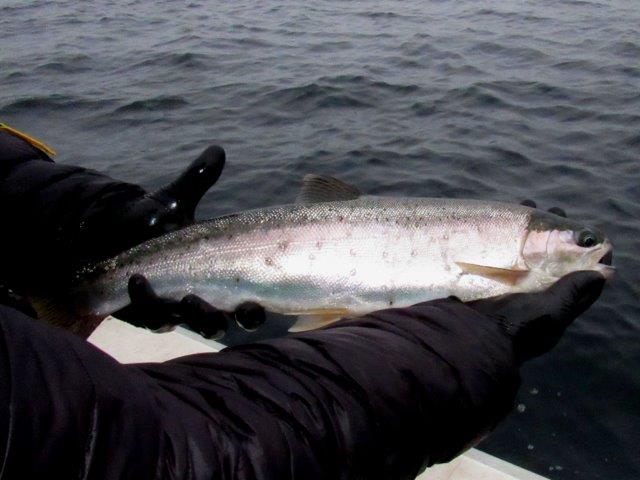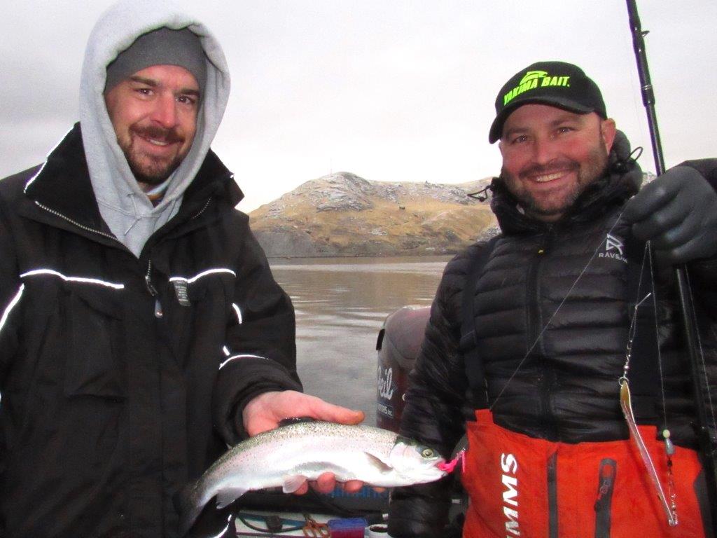 Mike McKee landed this rainbow while fishing with Austin Moser on Lake Roosevelt on Kokabow gear.