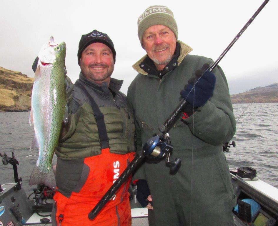 Austin Moser and I pose with a nice rainbow that was caught near the can line above Grand Coulee Dam.