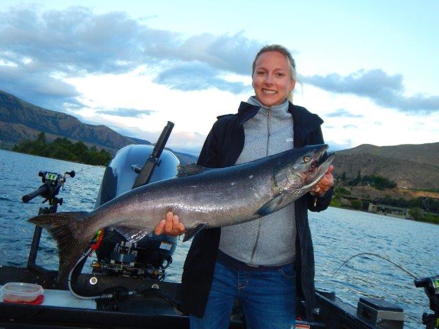 Catherine Willenbrecht landed this king at Chelan Falls after a terrific battle. Shane Magnuson also got her a sockeye below Wells Dam.