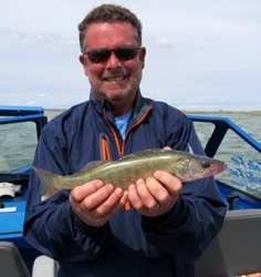 Here is Mike McKee with the first kokanee we landed. It was a whopper. We ended the day with a double of them.