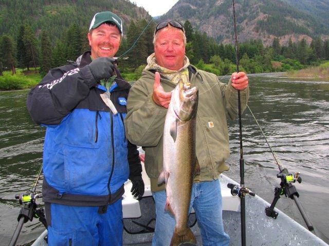 Dan Schleifers, of Manson, was pretty pleased with his first spring salmon on the Wenatchee River. This one hit a whole herring and Spin N Glo rig fished on a dropper. He was fishing with long-time friend Shane Magnuson, Upper Columbia Guide Service.