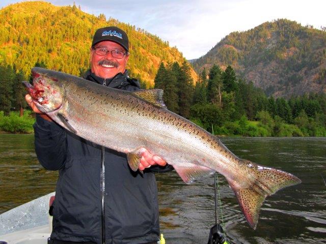 Eric Granstrom, Gaboon Productions, put down the camera long enough to land this spring Chinook on the Wenatchee River. It hit jet-planed eggs just across from the mouth of the Icicle River. He was fishing with guide Shane Magnuson.