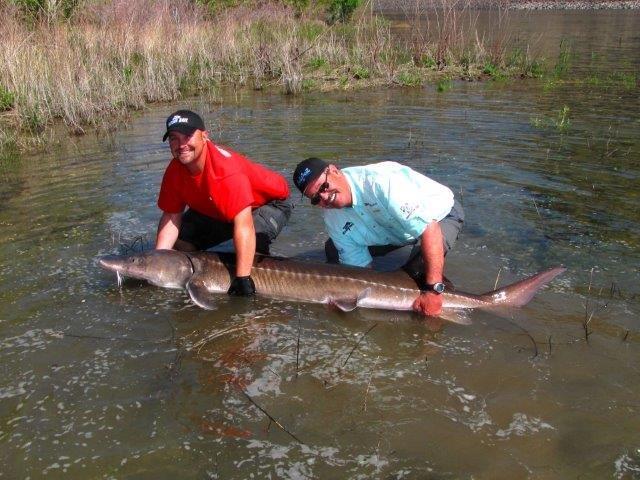 Austin Moser, Autstin's Northwest Adventures Guide Service, helps me hold a 9-foot sturgeon for a photo. This wasn't the biggest one we hooked that day!