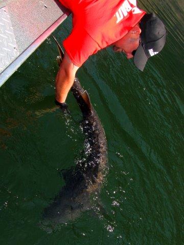 Austin Moser, Austin's Northwest Adventures, is about to release one of the sturgeon we landed while fishing below Rock Island Dam recently. We hooked eight big ones on this trip.