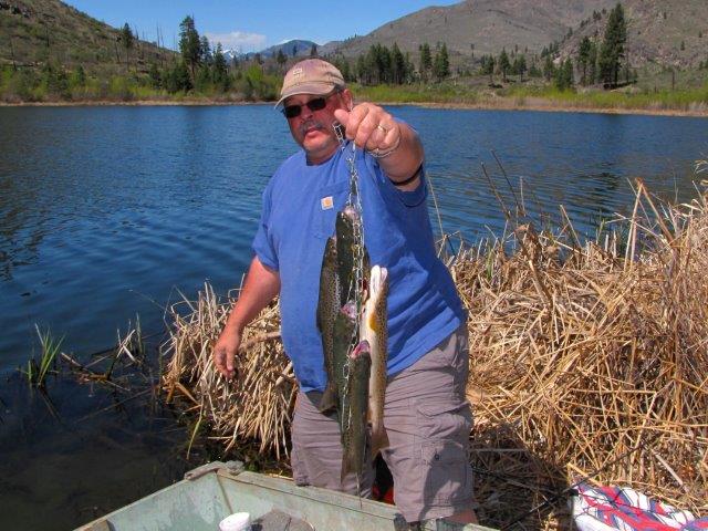 Dave Sims of Waterville shows off a stringer of very nice browns he and a friend got trolling at Antillon Lake.