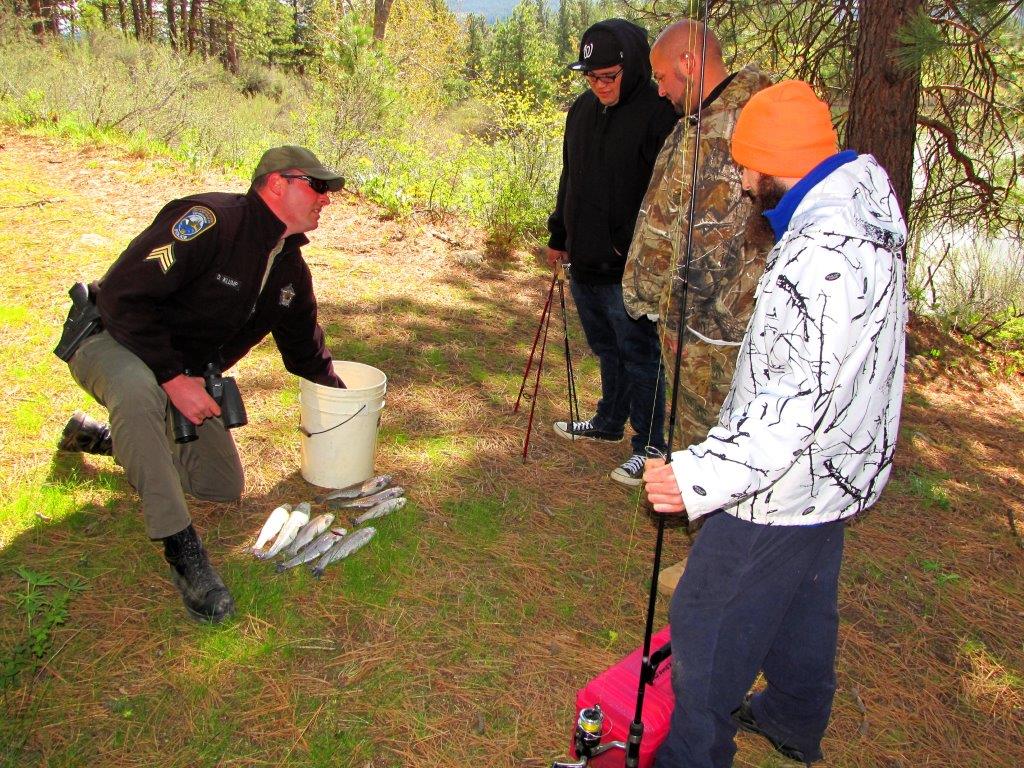 Officer Dan Klump with the Department of Fish and Wildlife checks the catches of anglers on Black Lake on the opening of trout season.