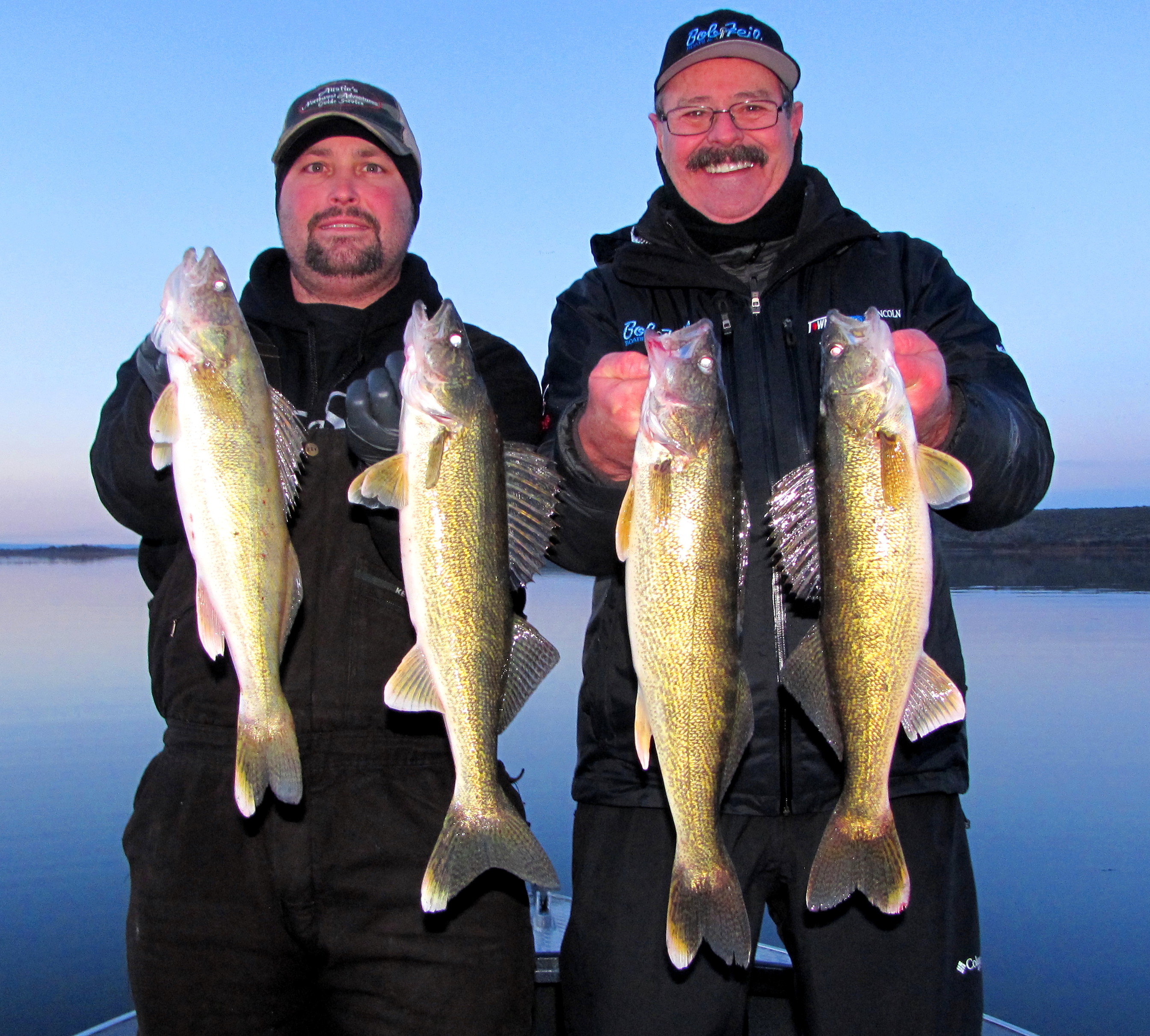 Austin Moser, of Austin's Northwest Adventures Guide Service (left) and I show off a nice catch of walleye. We were fishing with blade baits on Potholes Reservoir. Anglers are making catches like this of walleye right now, along with some very fat yellow perch.