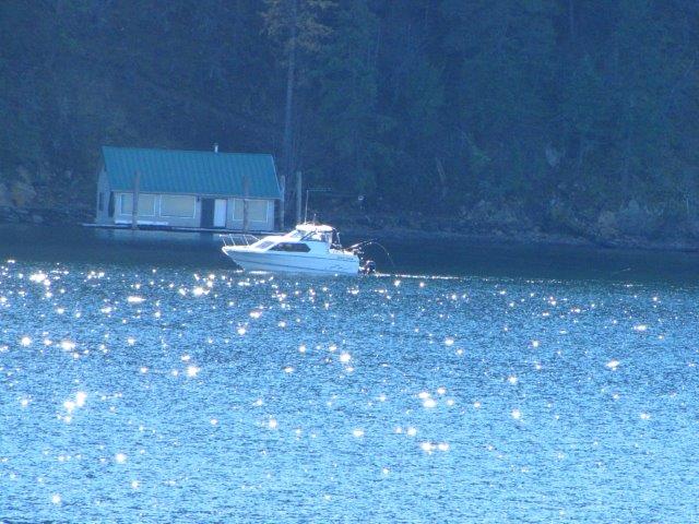 Fishing for Chinook salmon continues to be good on Lake Couer d'Alene, and there are several debies going on through the winter. Here an angler trolls the shoreline opposite Higgens Point toward the south end of the lake.