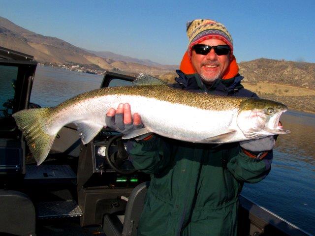This shot shows the steam boiling off the Columbia River at Bridgeport recently. It was about 15 degrees, which was fine for pulling plugs, but when the wind came up the temperature dropped to around zero. We left and tried fising elsewhere. Shane Magnuson put us on five steelhead on plugs.