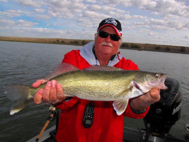 Brian Nielson, BJs Guide Service, holds up one of the walleye we caught for the camera. Three of us limited on walleye from 14 to 21 inches, and kept 28 perch, all over 11 inches. Potholes is the place to be!