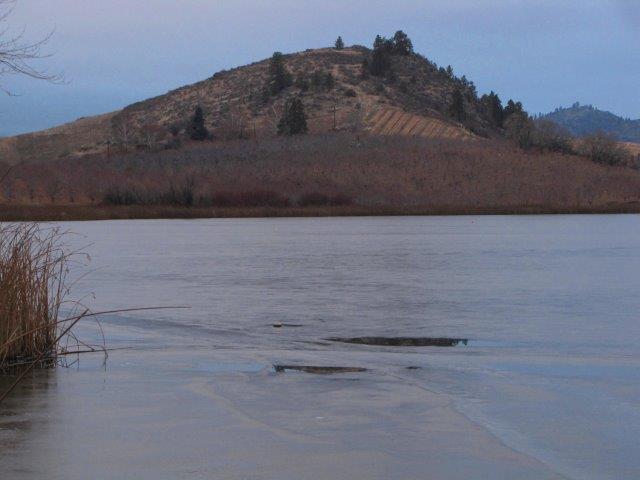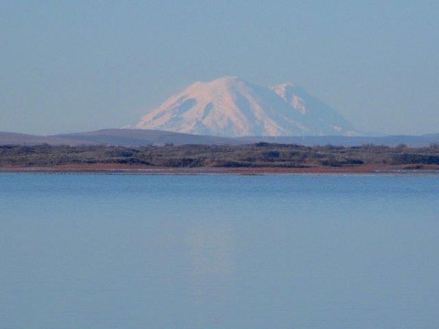 Mount Raineer was peaking over the hills in the distance when I was at Medicare Beach on Potholes Reservoir. It was a beautiful day, just too much ice floating around to allow for shore fishing.
