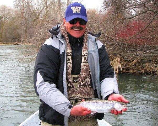 I missed a ton of hits on my indicator while floating the Yakima River, but I hooked this one. I was introduced to the Farmland section by Johnny Boitano of the Troutwater Fly Shop in Ellensburg. His brother Jason joined us on the float, and caught a bunch of rainbow and a cutthroat.