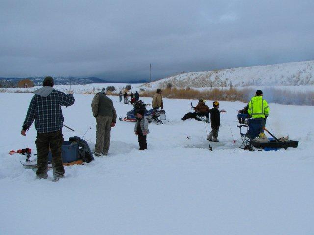 This just one group of anglers that were fishing at Sidley Lake during the NW Ice Fishing Festival in Molson. Unfortunately, not a single fish was caught. However, all the prizes were awarded by drawings.