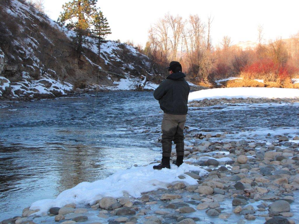 Kevin van Bueren, North Cascades Fly Fishing, demonstrated his method of mending that is so critical when fishing the Methow in low, clear and cold conditions on the Methow River in the winter.