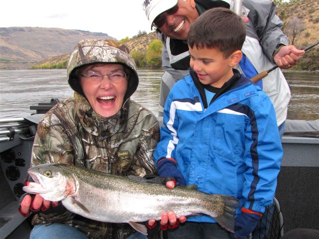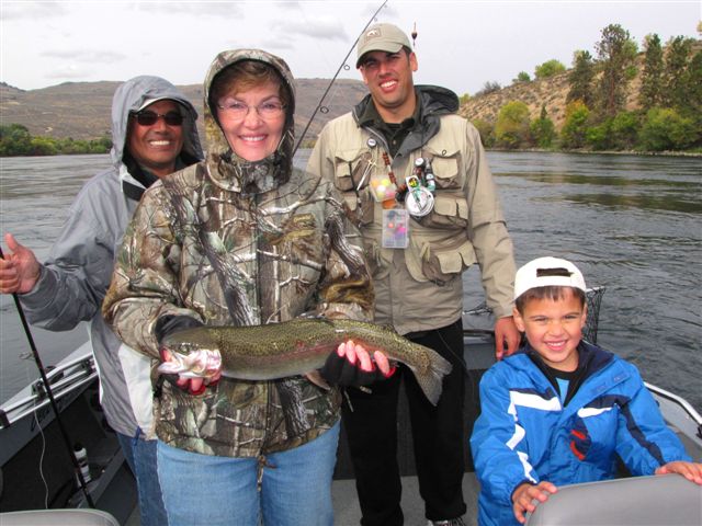 Here's the Anantatmula clan aboard my Jetcraft at Bridgeport. We all had a great day, catching and releasing many triploids and keeping one hatchery steelhead, all on bobbers and jigs.